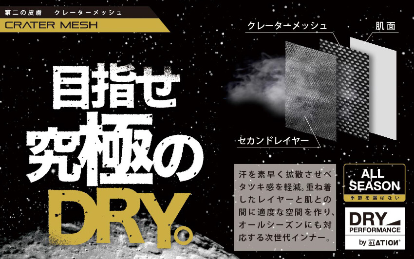 インナー 半袖 カジメイク Kajimeiku ATION クレーターメッシュ ノースリーブ 8820 通年ドライインナー スポーツ フィッシング 釣り アウトドア 登山などに