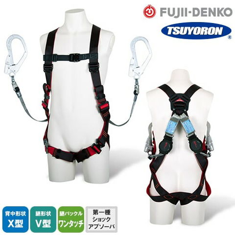安全帯 フルハーネス ツヨロン 藤井電工 ダブルランヤード付き 新規格 セット ハーネス 2丁掛け レヴォハーネス TH-508 ツインワン・ハンドリトラ 背中X型 V字 腿ベルト 墜落制止用器具 巻取式 巻き取り 軽量 高所作業 柱上作業 建設工事