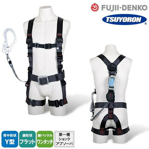 安全帯 フルハーネス ツヨロン 藤井電工 シングルランヤード付き 新規格 セット ハーネス 1丁掛け 飛燕ハーネス TH-506 ワン・ハンドリトラ 背中Y型 水平 フラット 墜落制止用器具 巻取式 巻き取り 軽量 一般 高所作業 柱上作業 建設工事