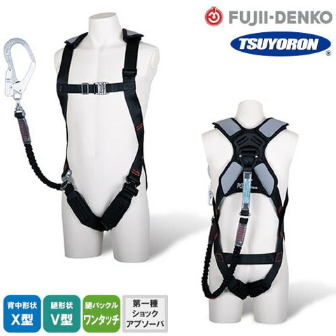 安全帯 フルハーネス ツヨロン 藤井電工 シングルランヤード付き 新規格 セット ハーネス 1丁掛け スマートハーネス TH-SM510 ノビロン 背中X型 V字 腿ベルト 墜落制止用器具 伸縮式 軽量 一般 高所作業 柱上作業 建設工事 簡単着脱