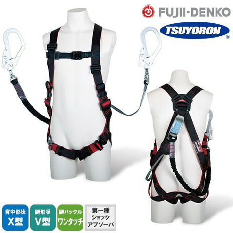 安全帯 フルハーネス ツヨロン 藤井電工 ダブルランヤード付き 新規格 セット ハーネス 2丁掛け レヴォハーネス TH-508 背中X型 V字 腿ベルト 墜落制止用器具 伸縮式 巻取式 軽量 一般 高所作業 柱上作業 建設工事 簡単着脱