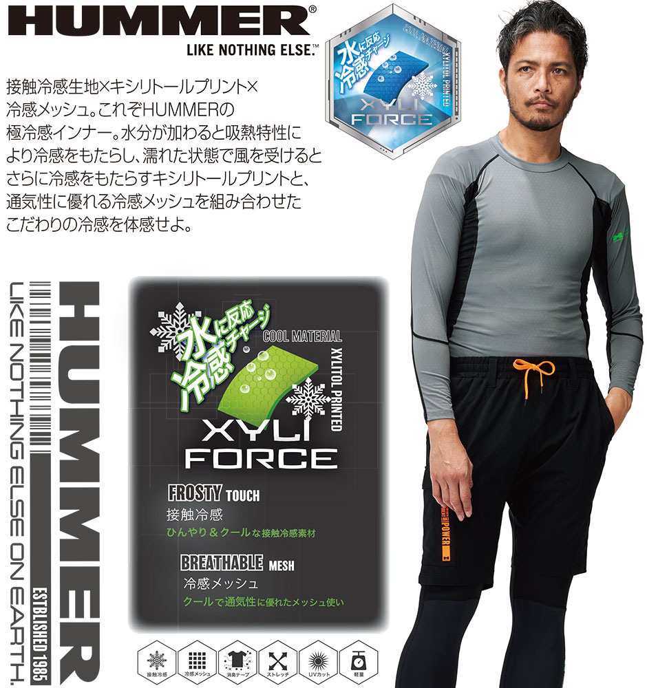 インナー 長袖 HUMMER ハマー キシリフォースコンプレッション 908315 夏用 涼しい クール UVカット 熱中症対策 日焼け対策 冷感 涼しい 消臭 キシリトール 軽量