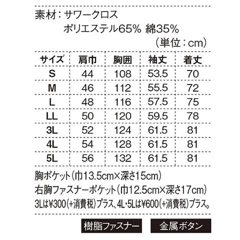 | ※生地素材、ボタン類、製品サイズ等、予告無く仕様変更となる場合がございます。確認が必要な際にはお問合せください。 |