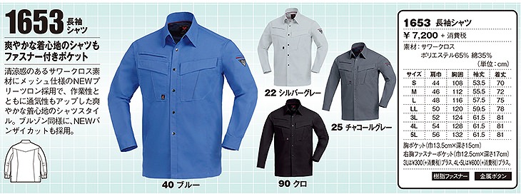 ジーベック 長袖シャツ 作業着 通年 メンズ 吸汗 速乾 通気性 清涼感 カタログ掲載 作業服 作業シャツ ワーク マン おしゃれ 人気 安い かっこいい かわいい おすすめ 春夏 秋冬 フォーマル 大きいサイズ 1600シリーズ XEBEC 1653