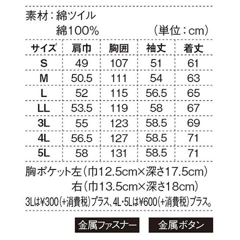 | 【変更開始年月:2021年4月】 こちらの品番の商品サイズに関しまして、メーカーの在庫がなくなり次第順次記載しておりますサイズから「肩幅-2cm・袖丈+1cm」へ切り替えとなります。合わせて「胸ポケット内部の小ポケット無し」へと切り替えとなります。ご注文の前にお問い合わせいただきましたらメーカーの切り替え状況をお調べできますので、ご不安の方は事前にお問い合わせくださいませ。 |