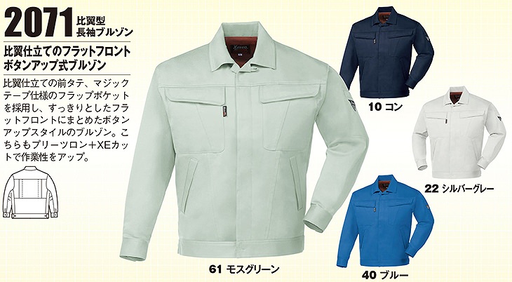 ジーベック XEBEC 2071 イケメン 比翼型長袖ブルゾン 綿100% 通年 秋冬用 メンズ 男性用 作業服 作業着 上着 紺 ネイビー ジャケット 定番 おしゃれ かっこいい 人気 ワーク企業 法人 作業 工場 外作業