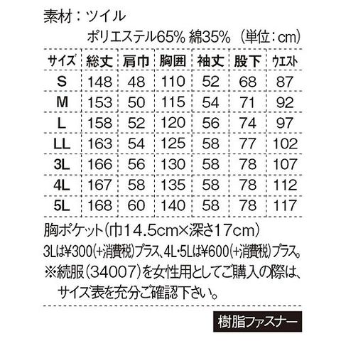 ジーベック XEBEC 34007 カラー続服(ツナギ) 青 赤 通年 秋冬用 メンズ レディース 男女兼用 作業服 作業着 サロペット つなぎ 定番のレビュー