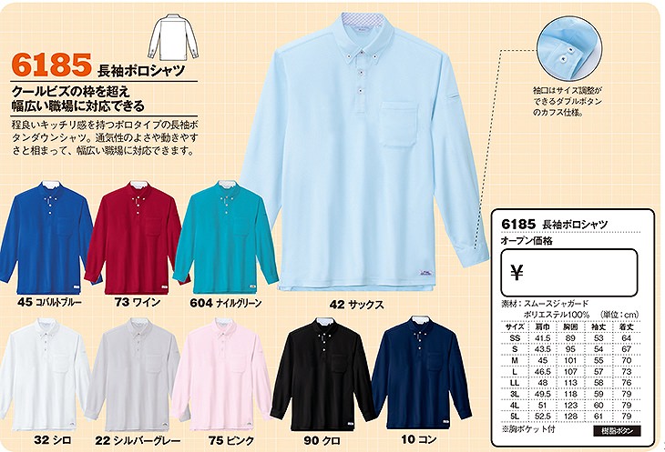 ジーベック クールビズ 長袖ポロシャツ 作業着 通年 メンズ レディース ストレッチ 吸汗 速乾 消臭 軽量 通気性 蒸れない カタログ掲載 ボタンダウンシャツ 長袖シャツ 作業服 作業シャツ ワーク マン おしゃれ 大きいサイズ XEBEC 6185