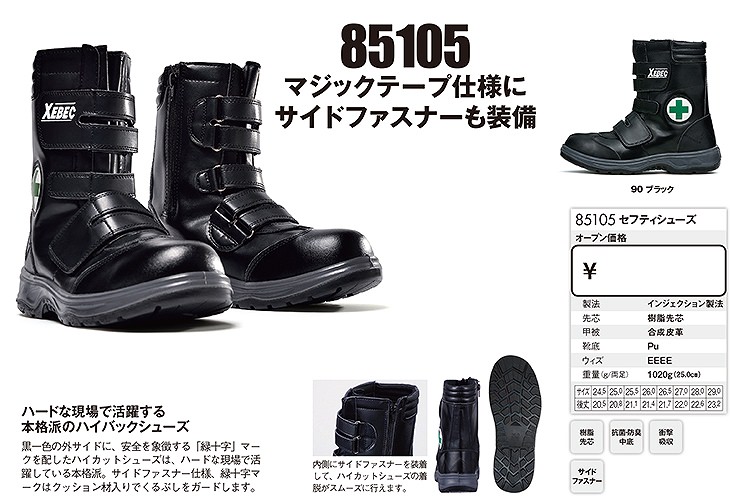 安全靴 ジーベック XEBEC 85105 セフティシューズ 先芯あり メンズ 男性用 作業靴 ロングブーツ ハイカット マジックテープ 定番