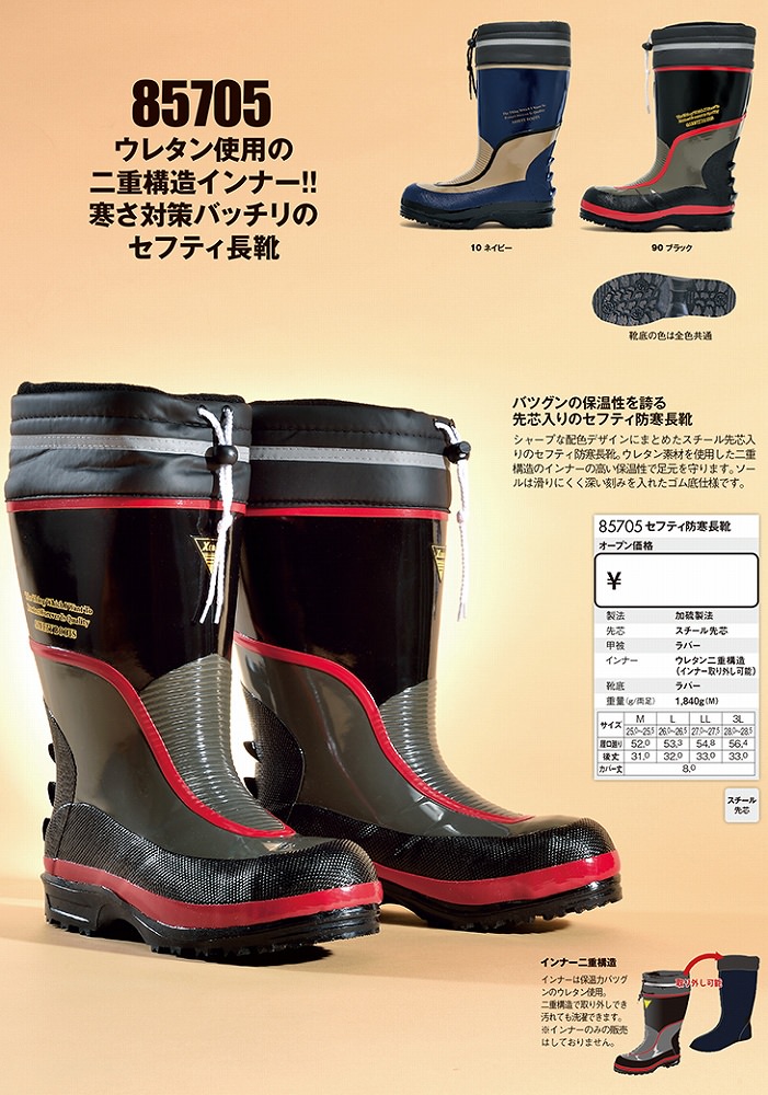 抜群の保温性を誇る先芯入りのセーフティ防寒長靴