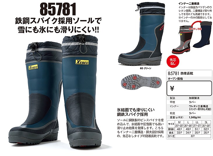 作業靴 ジーベック XEBEC 85781 防寒長靴 先芯なし メンズ 男性用 安全靴 レインブーツ 履き口カバー 紐付き 定番