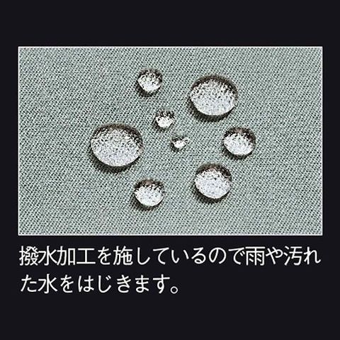 | 撥水加工:表面に雨に汚れた水などをはじく撥水加工を施しています。 帯電防止素材:人体に帯電した静電気による生産障害や事故を防ぐ帯電防止素材。 |