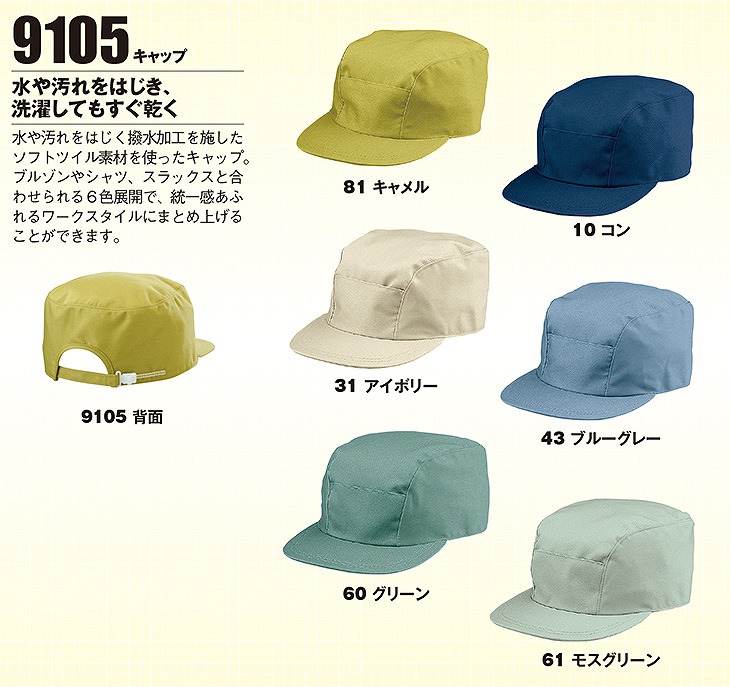 ジーベック XEBEC 9105 キャップ 通年 メンズ 男性用 作業服 作業着 作業帽 帽子 作業キャップ 定番