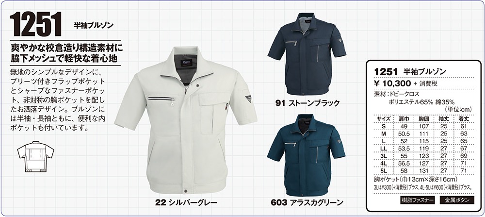 作業服 ジーベック 1251 作業着 春夏 上着 ジャケット 定番 清涼素材 防縮防シワ加工 速乾性抜群