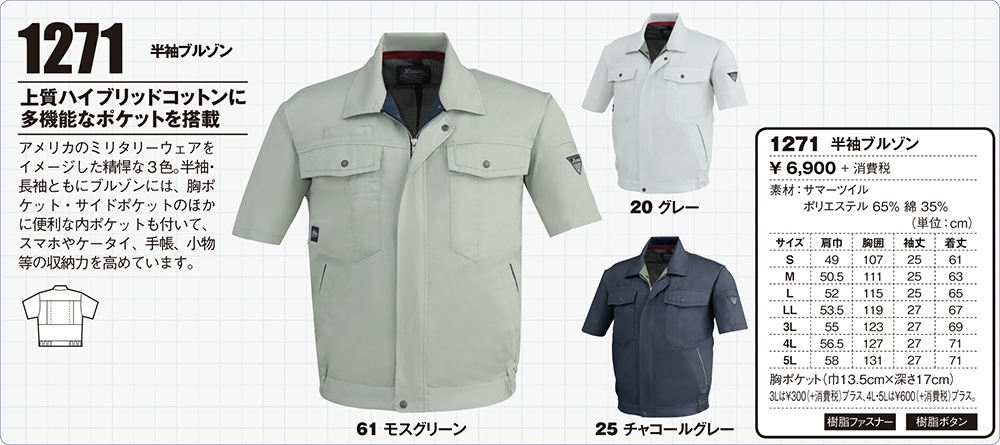 | 【変更開始年月:2021年4月】 こちらの品番の商品サイズに関しまして、メーカーの在庫がなくなり次第順次記載しておりますサイズから「肩幅-2cm・袖丈+1cm」へ切り替えとなります。合わせて「胸ポケット内部の小ポケット無し」へと切り替えとなります。ご注文の前にお問い合わせいただきましたらメーカーの切り替え状況をお調べできますので、ご不安の方は事前にお問い合わせくださいませ。 |