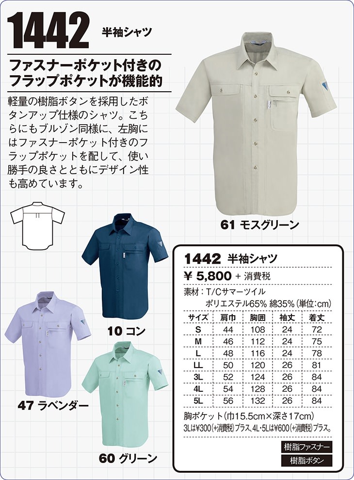 作業服 ジーベック 1442 半袖シャツ 作業着 春夏 定番 抗菌防臭加工 帯電防止素材
