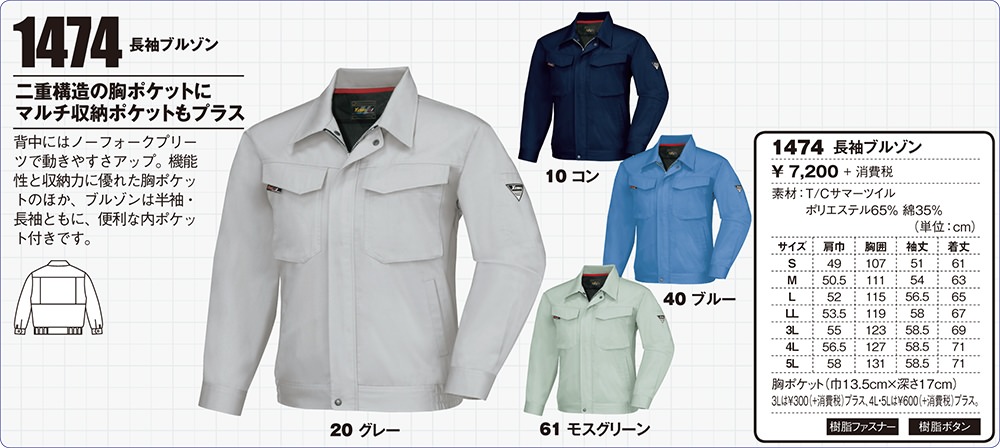 作業服 ジーベック 1474 長袖ブルゾン 作業着 上着 ジャケット 定番 帯電防止素材