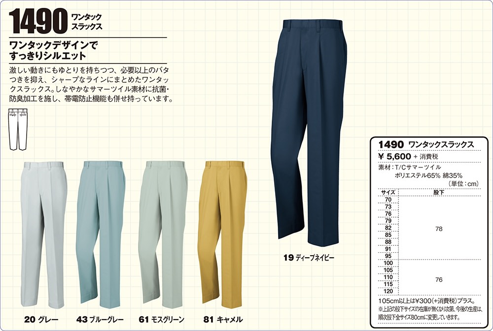 作業服 ジーベック 1490 メンズ 男性 作業着 作業パンツ パンツ スラックス 腿ポケット無 定番 ズボン