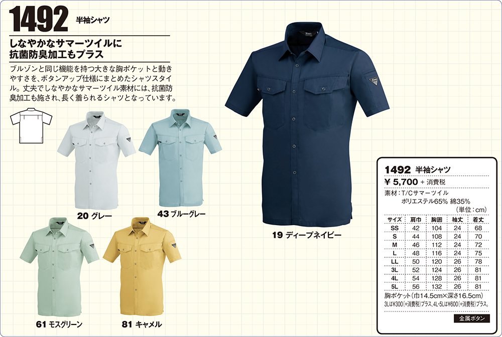 丈夫でしなやかなサマーツイルに抗菌防臭加工、立体裁断で作業時のスムーズな動きを実現しタフな現場を強力にサポート。土木現場で人気の【1494シリーズ】