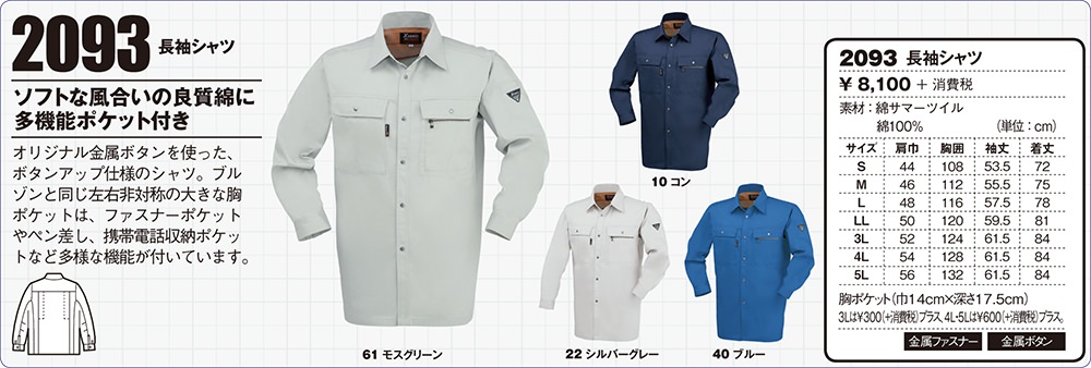 | 【変更開始年月:2021年4月】 こちらの品番の商品は、メーカーの在庫がなくなり次第順次「胸ポケット内部の小ポケット無し」へと切り替えとなります。 ご注文の前にお問い合わせいただきましたらメーカーの切り替え状況をお調べできますので、ご不安の方は事前にお問い合わせくださいませ。 |
