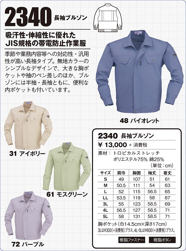 作業服 ジーベック 2340 作業着 上着 ジャケット 定番 帯電防止素材 伸縮素材 形態安定加工