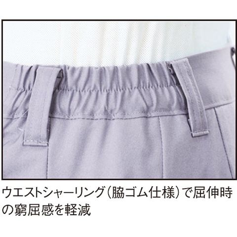 ポリエステルの比率を高めたトロピカルストレッチを使用し、形状安定加工に、防縮防シワ加工を加えて洗って干すだけ、アイロン不要のお手入れ簡単作業服。吸汗性・伸縮性に優れるとともに、帯電防止機能もあり、土木・建築や運送、工場と幅広い職場に対応します。