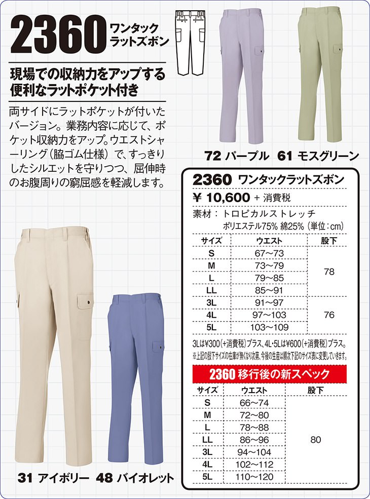 ジーベック 2360 ワンタックラットズボン【作業服 カーゴパンツ 作業ズボン】春夏用