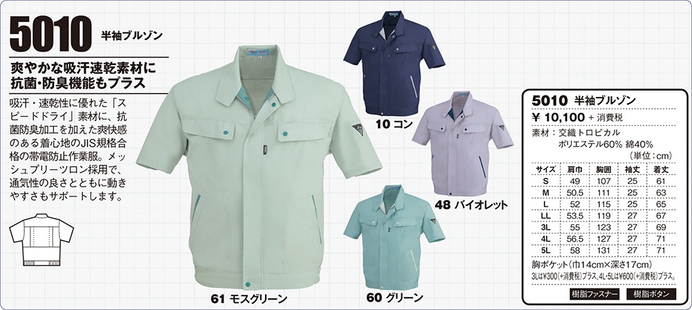 作業服 ジーベック 5010 作業着 春夏 上着 ジャケット 定番 帯電防止素材 ソフト風合い 形態安定