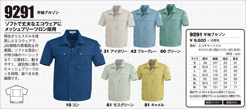作業服 ジーベック 9291 作業着 春夏 上着 ジャケット 定番 帯電防止素材 リサイクル素材 ソフト