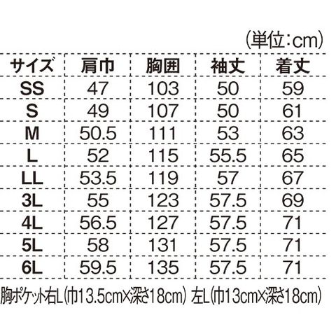 | 【変更開始年月:2021年4月】 こちらの品番の商品サイズに関しまして、メーカーの在庫がなくなり次第順次記載しておりますサイズから「肩幅-2cm・袖丈+1cm」へ切り替えとなります。合わせて「胸ポケット内部の小ポケット無し」へと切り替えとなります。ご注文の前にお問い合わせいただきましたらメーカーの切り替え状況をお調べできますので、ご不安の方は事前にお問い合わせくださいませ。 |
