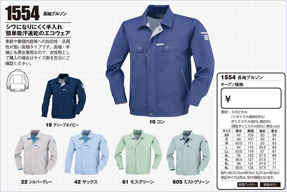 作業服 ジーベック 1554 メンズ レディース 男性 女性 男女兼用 作業着 上着 ジャケット 定番