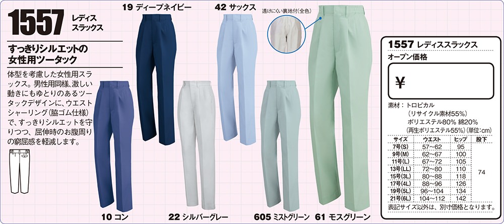ジーベック 1557 クレスタ21 レディススラックス【作業服 作業ズボン】春夏用 緑