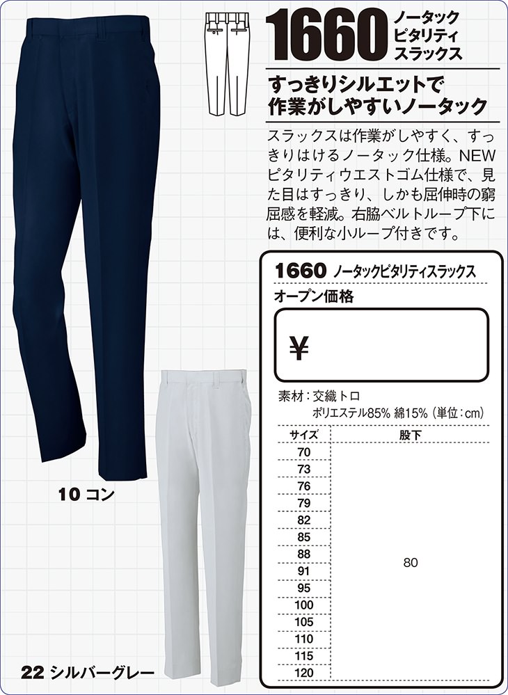 ジーベック 1660 サマーカラーライダース ノータックピタリティスラックス【作業服 作業ズボン】春夏用
