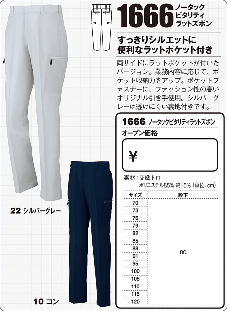 ジーベック 1666 サマーカラーライダース ノータックピタリティラットズボン【作業服 カーゴパンツ 作業ズボン】春夏用のレビュー