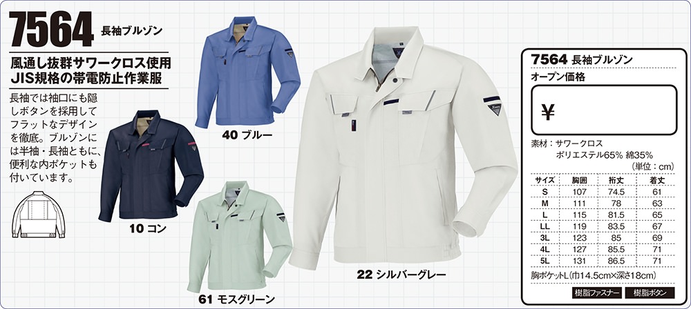 作業服 ジーベック 7564 作業着 上着 ジャケット 定番 帯電防止素材 抗菌防臭加工 速乾性抜群のレビュー