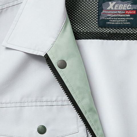 生地に帯電防止素材を採用。空気の漏れをクスなくするために糸の織り密度を上げたポリエステル・綿混紡高密度ブロード生地を使用しているため、洗濯耐久性、イージーケア性を高めています。