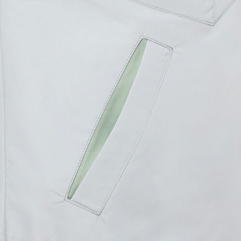| 左右胸ポケット(巾13cm×深さ17cm)、樹脂ファスナー、樹脂ドットボタン |