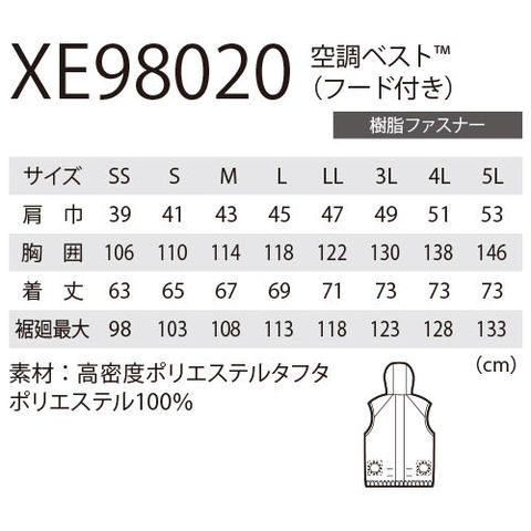 空調服 ベスト ジーベック XEBEC フード付き空調ベスト XE98020 作業着 作業服 春夏 扇風機作業服 工事 土木 土建 建設 外作業 炎天下 釣り アウトドア スポーツ観戦 イベント 猛暑対策