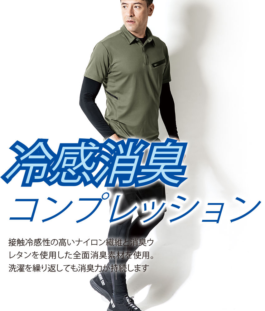 アームカバー 夏用 涼しい uv 全面消臭 接触冷感 吸汗 速乾 腕カバー UVカット 紫外線 紫外線カット 日焼け対策 ジーベック XEBEC コンプレッション 6653 作業用 運転 アウトドア スポーツ ゴルフ テニス