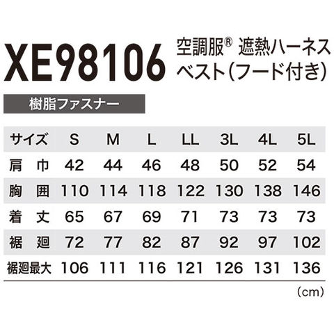 空調服 墜落制止用器具 ジーベック XEBEC 空調服遮熱ハーネスフード付きベスト 2023年モデル XE98106 作業着 作業服 春夏 猛暑 熱中症対策 遮熱 紫外線カット ファン 扇風機 サイドファン