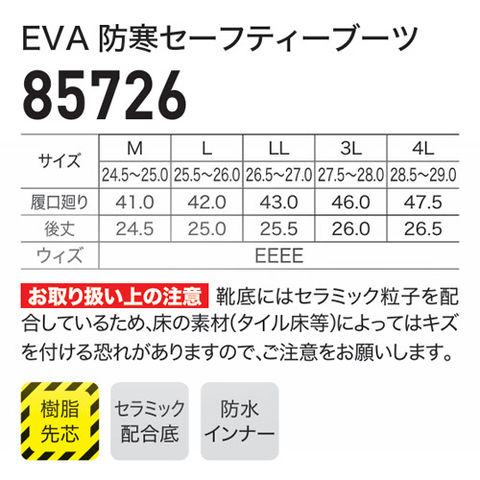 安全長靴 ショート ジーベック XEBEC EVA 防寒セーフティブーツ 85726 JIS規格 防水 保温 グリップ 軽量 雪作業 積雪 除雪 作業靴 樹脂 先芯 耐滑 作業靴 冬 軽作業 キャンプ アウトドア すべりにくい