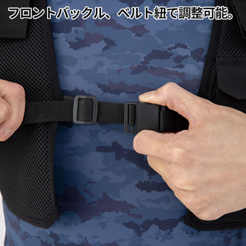 | 左脇ポケット(巾9cm×高さ13.5cm) ■バッテリーの熱が伝わりにくくするための断熱シート付 ■左脇にバッテリー、コントローラー収納可能なポケット ■通気性のよいメッシュ素材 ■オリジナル転写プリント入り ■肩、背中の調節ゴムで様々な体型に対応 ■フロントバックル、ベルト紐で調整可能 |