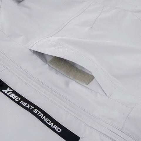 | 上部ファン仕様(腰回り道具の作業の邪魔になりにくい・背もたれに当たらない)、右胸ロゴ入りファスナーポケット、左胸ファスナーポケット、両胸ファスナーポケット、左内側バッテリーポケット、首元の調整ヒモで空気の抜けを調整、左袖ペン差し付(反射ネーム付)、袖口ドットボタンで空気の抜けを調整 |