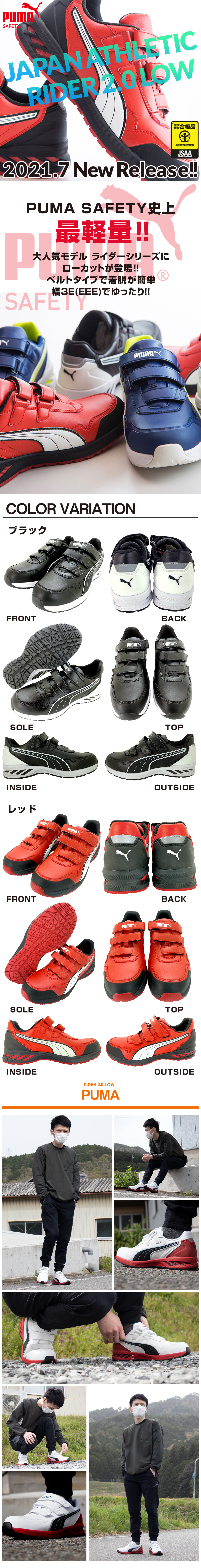 安全靴 プーマ PUMA RIDER 2.0 LOW ライダー 2.0 ロー 新商品 新作 マジックテープ スニーカー メンズ レディース ローカット 人工皮革 軽量 スニーカー JSAA規格 衝撃吸収 耐油 かっこいい おしゃれ 建築 建設 運送 工場 25.0~28.0cm