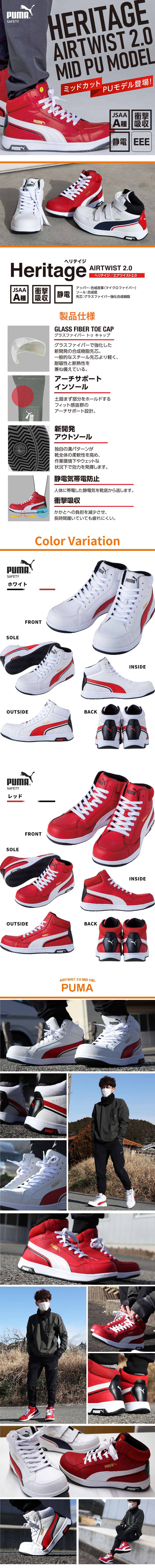 【数量限定!9,900円】安全靴 ハイカット PUMA プーマ 安全靴 新作 静電 ヘリテイジ エアツイスト 2.0 MID Heritage AIRTWIST 2.0 MID 2024 新商品 メンズ 紐靴 ミッドカット ミドルカット スニーカー 作業靴 JSAA規格 軽量 人工皮革 かっこいい