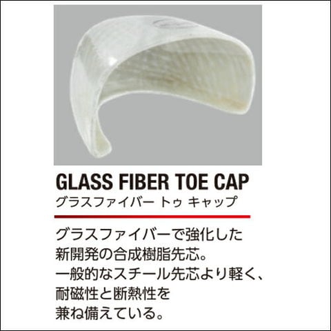 | ・グラスファイバーで強化した新開発の合成樹脂先芯採用。一般的なスチール先芯より軽く、耐磁性と断熱性を兼ね備えている。 ・土踏まず部分をホールドするフィット感抜群のアーチサポート設計。 ・独自の溝パターンが靴全体の柔軟性を高め、作業環境下やウェットな状況下で効力を発揮します。 ・人体に帯電した静電気を靴底から逃がします。 ・かかとへの負担を減少させ、長時間履いていても疲れにくい。 |