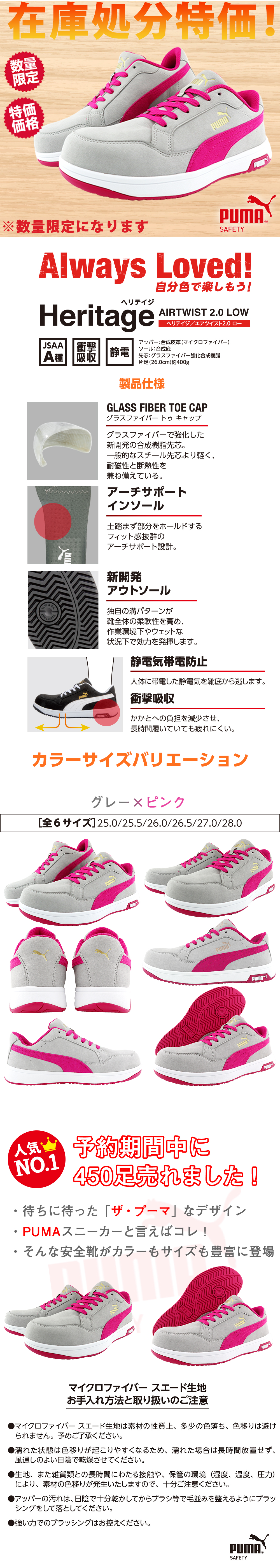 PUMAスニーカーで最も人気のデザインを安全靴にも採用しました。