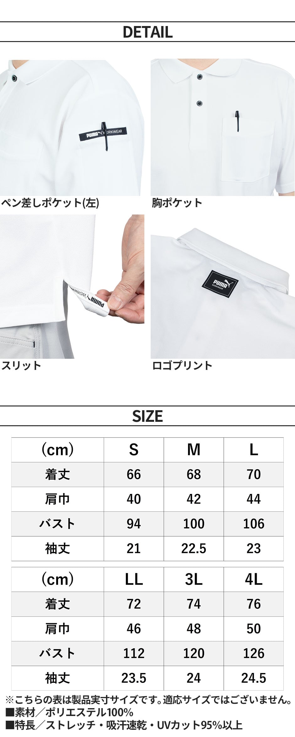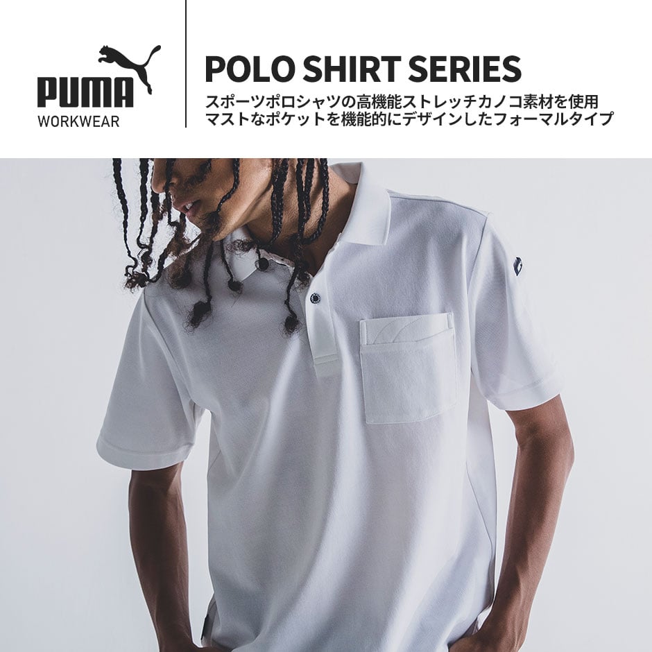 作業ウェア PUMA プーマ 半袖ポロシャツ メンズ 吸汗 速乾 ストレッチ 作業着 作業服 消臭テープ UVカット クールビズ 涼しい 制服 ポロシャツ ユニフォーム ポケット スポーツ ゴルフ 紺 黒 白 春夏 ワーク PW-4014N