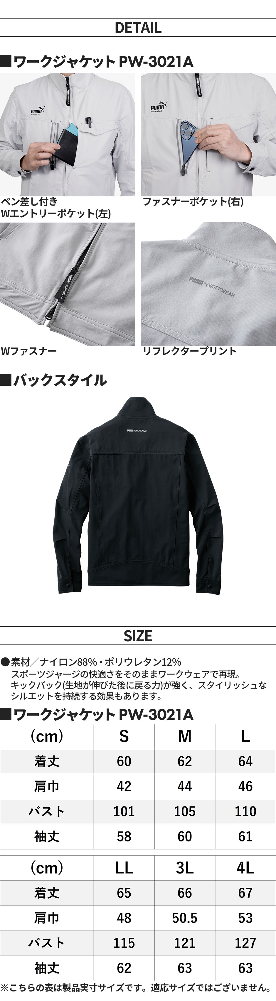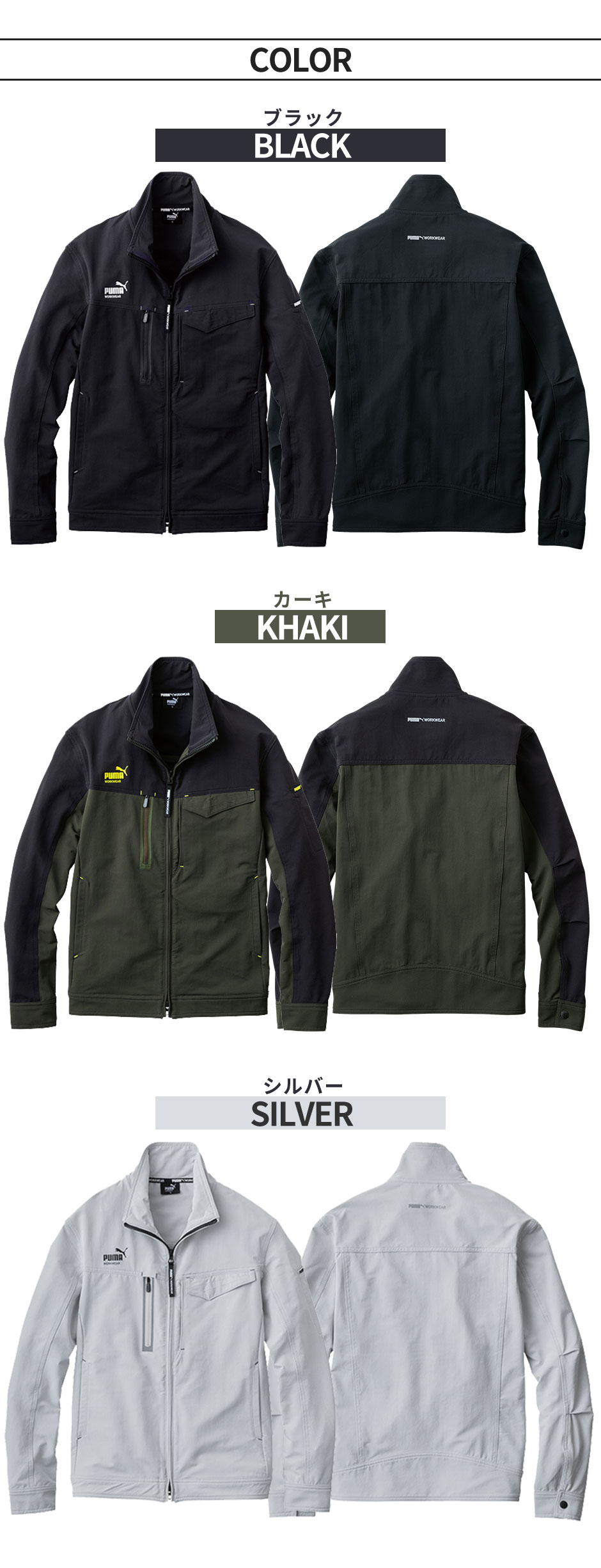 作業ウェア PUMA プーマ ワークジャケット 作業着 ストレッチ ジャケット 作業服 通年 メンズ ブルゾン ジャンパー 大きいサイズ 4L 作業着 かっこいい おしゃれ 人気 ユニフォーム 黒 シルバー ワークウェア 作業 PW-3021A