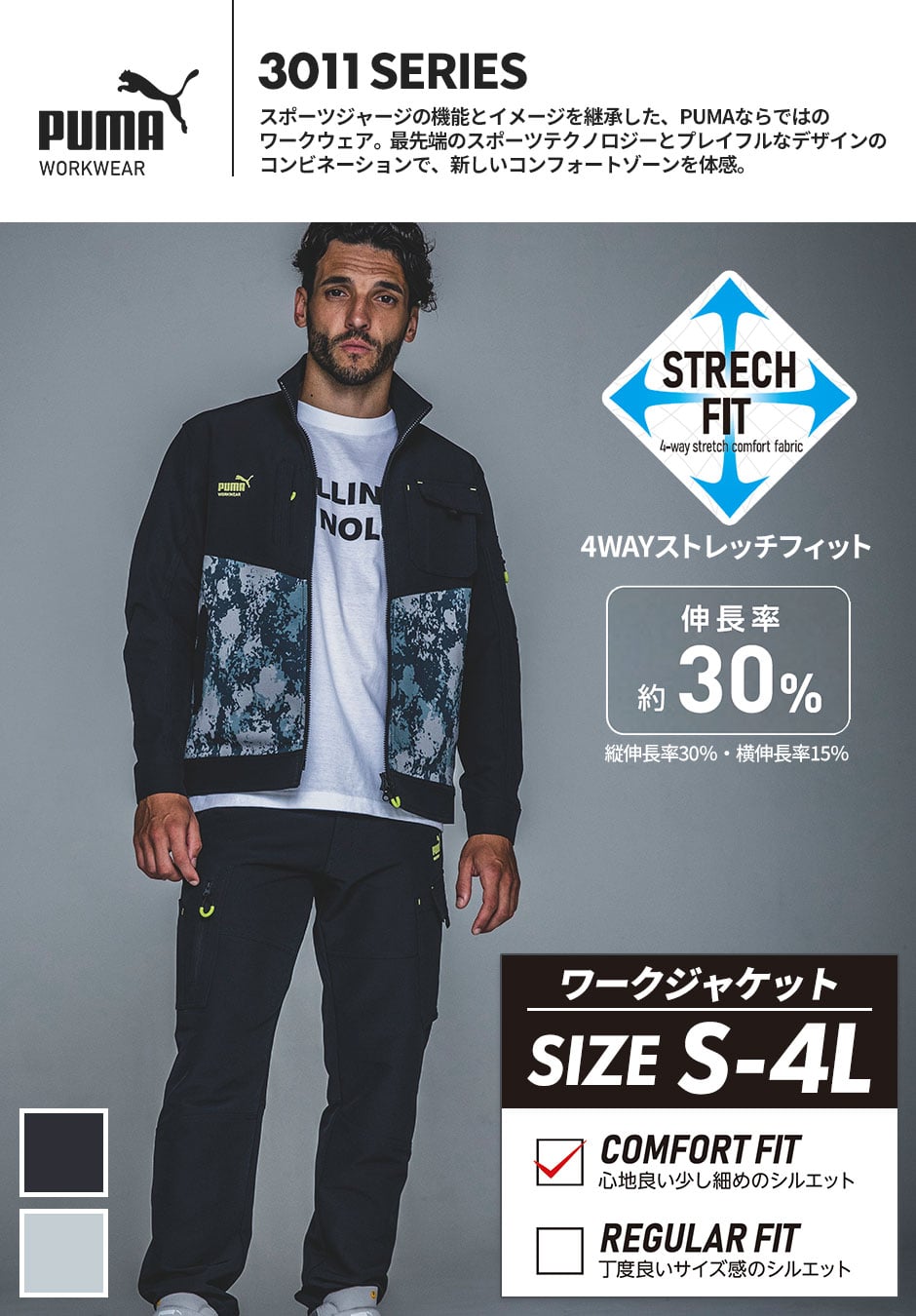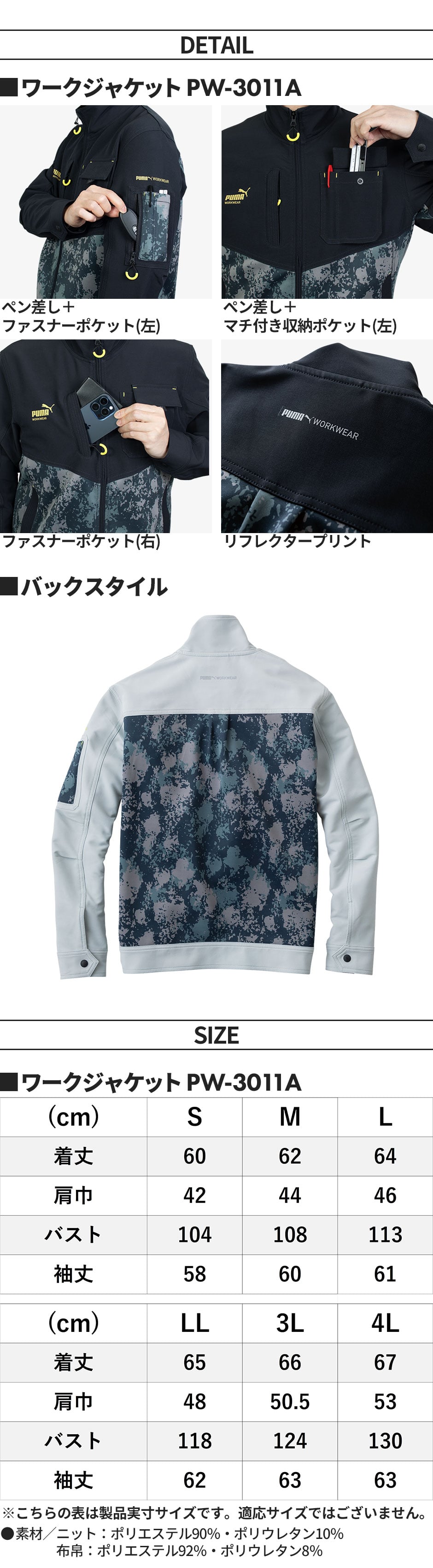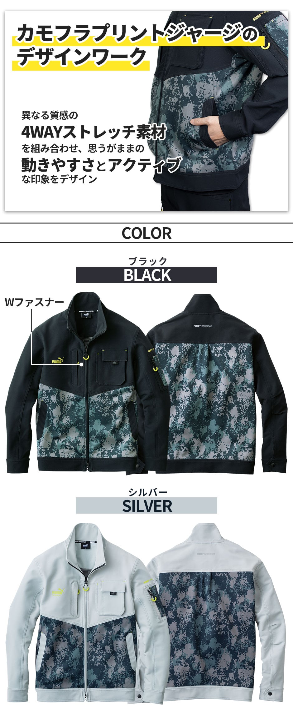 作業ウェア PUMA プーマ ワークジャケット 作業着 ストレッチ ジャケット 作業服 メンズ ブルゾン ジャンパー 大きいサイズ 3L 4L 作業着 反射材付き かっこいい おしゃれ 人気 ユニフォーム 黒 シルバー ワークウェア 作業 PW-3011A アウトドア 現場 土木 建築 屋外作業 工